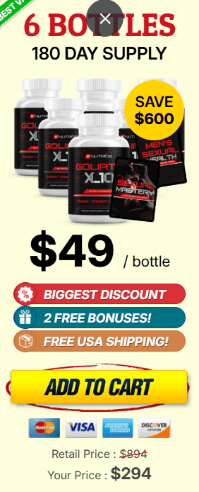 At this moment you can order Goliath XL 10 supplement for 50% OFF + FREE Shipping. This is a Limited-Time Offer and it won’t be available for long.